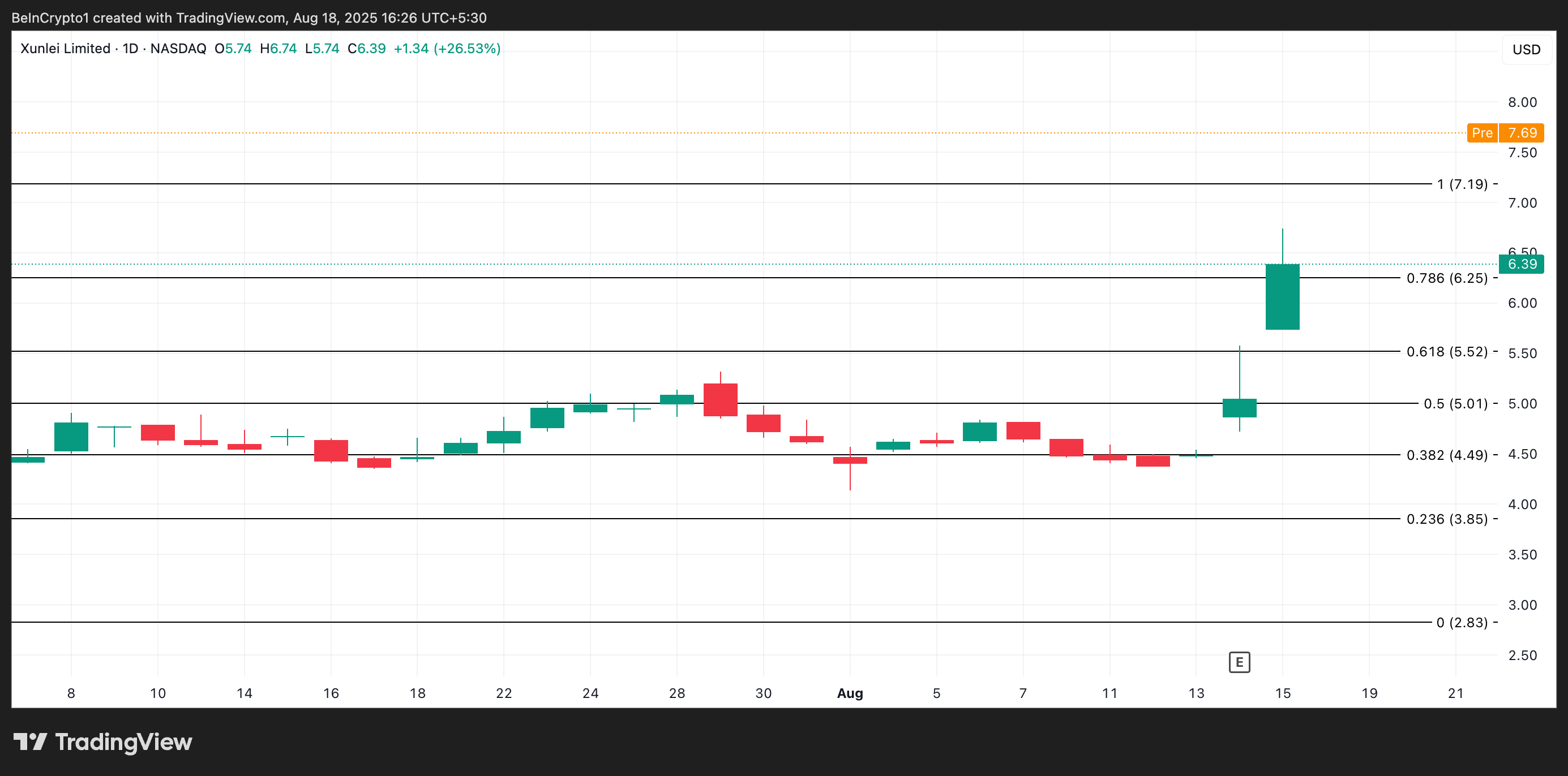 Xunlei Limitedin osakkeet päättivät perjantain istunnon hintaan 6,39 dollaria. Tämä oli 26,53 % nousu, joka tapahtui sen jälkeen, kun yhtiö julkaisi toisen vuosineljänneksen 2025 taloudelliset tulokset. Vahva tulosraportti oli hintarallin keskeinen ajuri, joka kiinnitti kauppiaiden huomion osakkeeseen tämän viikon alkaessa.