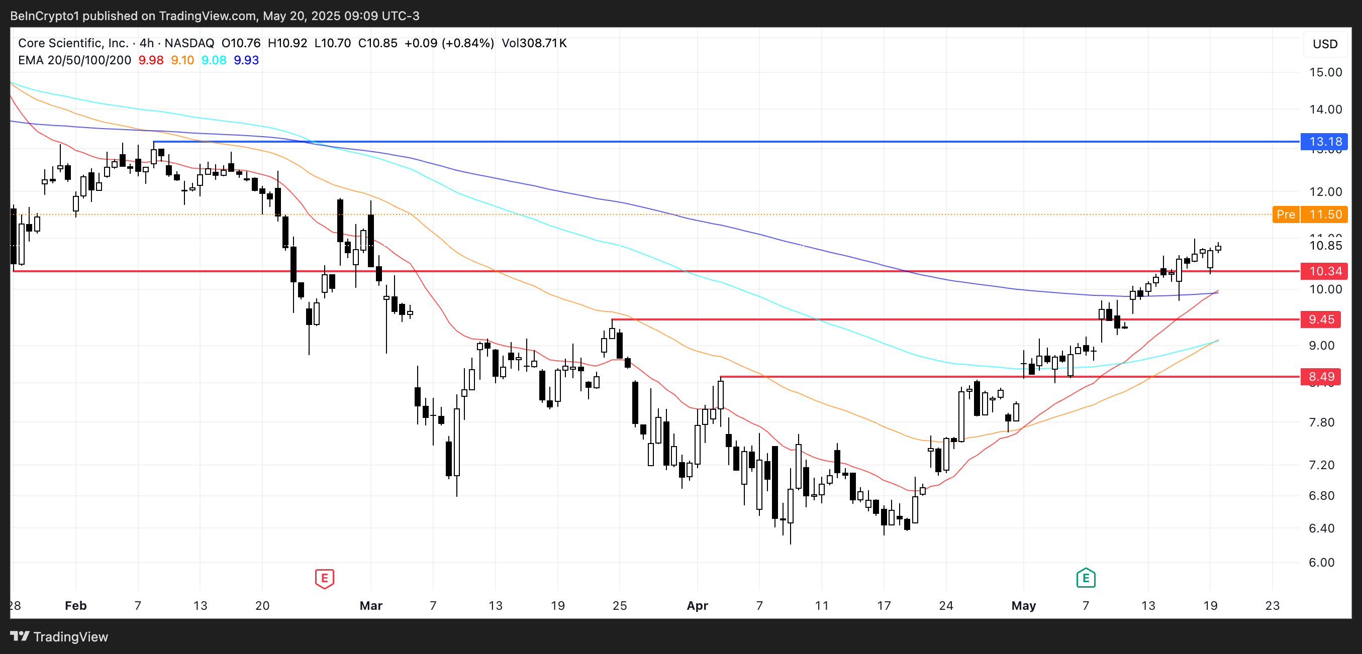 Core Scientific (CORZ) päätti eilen vaatimattomalla 0,65 %:n nousulla ja on jo noussut 5 % ennakkomarkkinakaupassa, Elizabeth Crainin nimityksen jälkeen hallitukseen.
