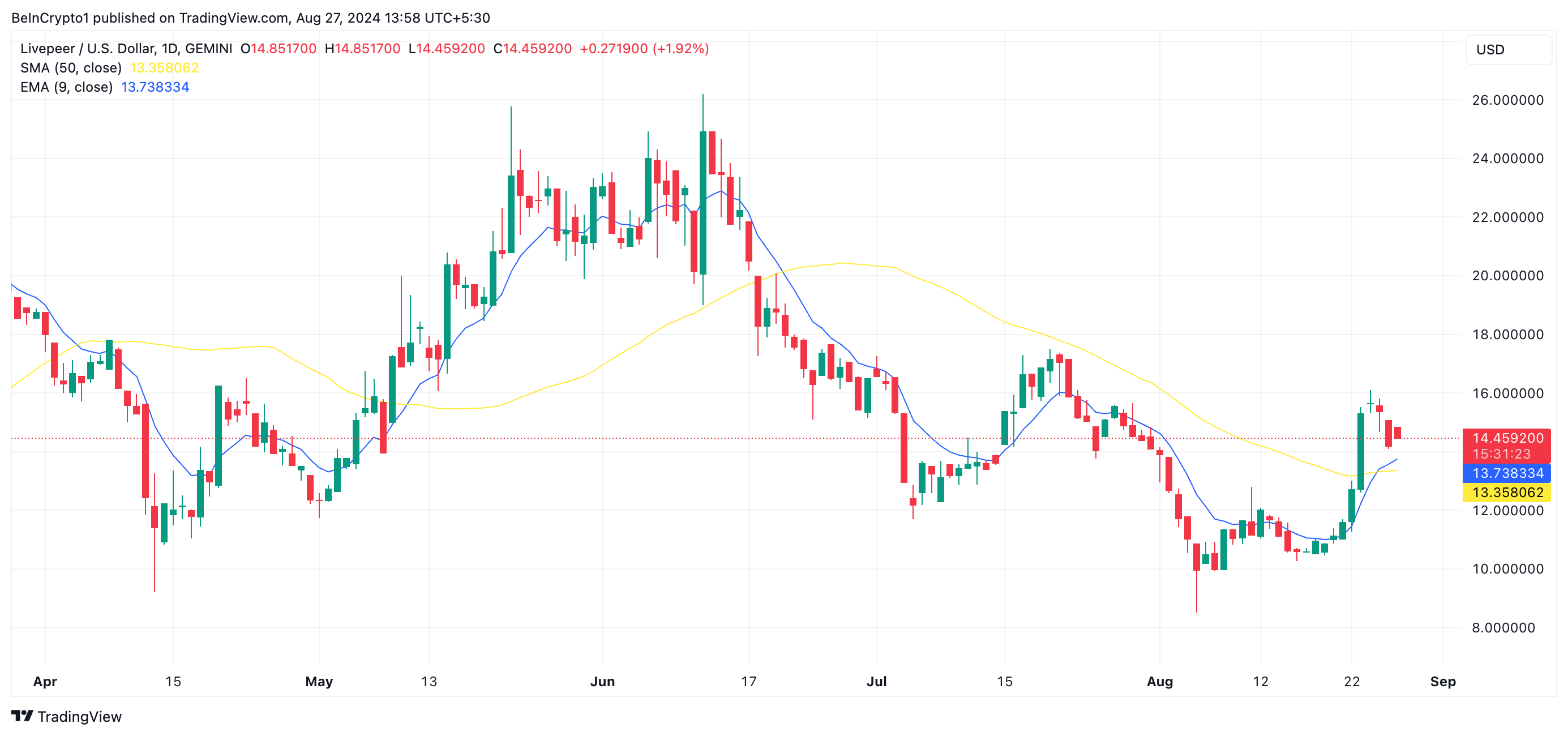 Livepeer (LPT) nousee tärkeiden liikkuvien keskiarvojen yläpuolelle