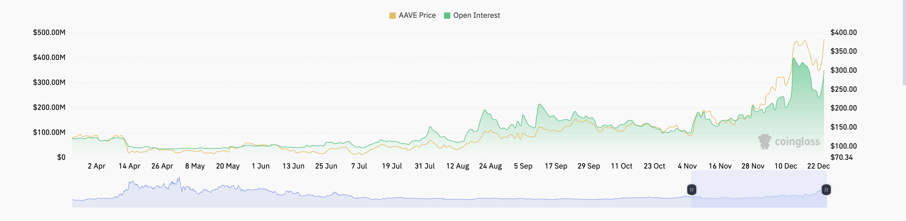 Open interest viittaa johdannaismarkkinoilla, kuten futuureissa tai optioissa, olevien selvittämättömien sopimusten kokonaismäärään. Kuten AAVE:n tapauksessa, kun omaisuusvaran open interest nousee hintarallin aikana, kauppiaat avaavat uusia positioita hinnan liikkeen suuntaan, mikä osoittaa vahvaa markkinaluottamusta ja mahdollisuutta jatkuvaan momentumaan.