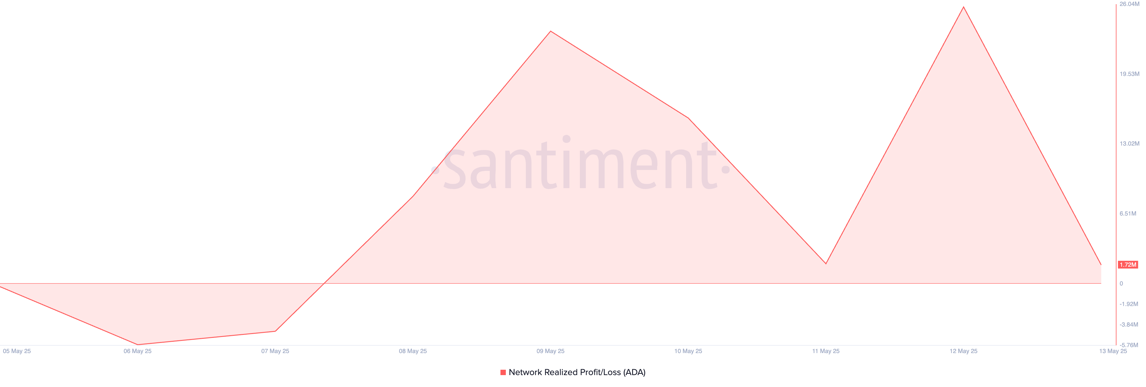 Lisäksi ADA:n verkon toteutunut voitto/tappio -tunnusluku on laskussa, mikä osoittaa, että merkittävä osa ADA:n haltijoista on tällä hetkellä tappiolla hinnan laskiessa.