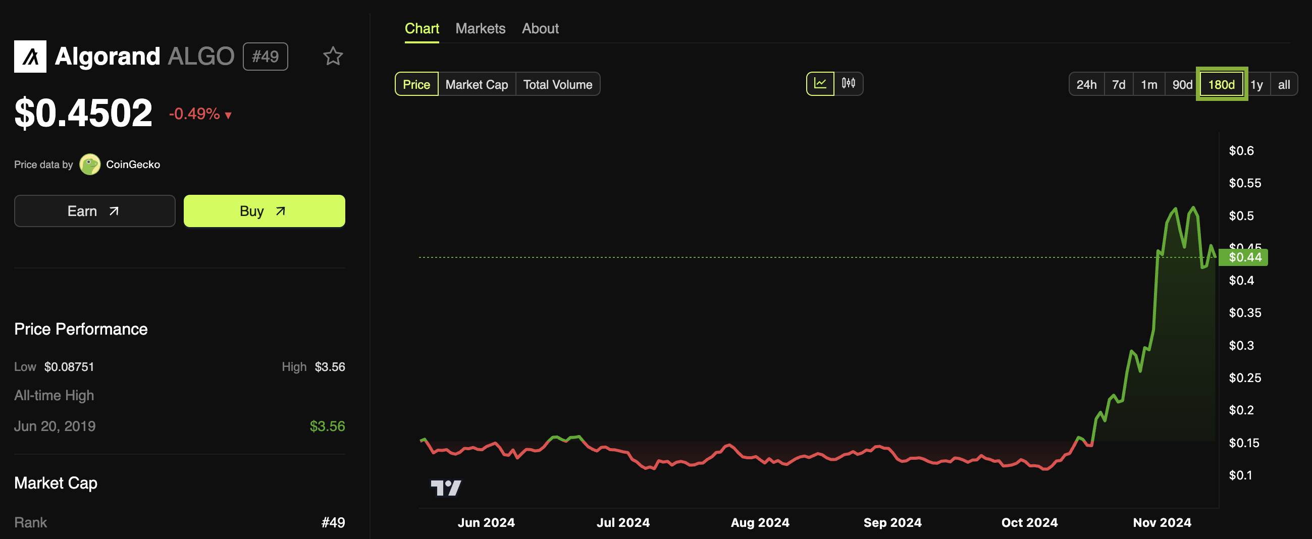 Algorandin kaltaisille ei-stablecoin-krypto-yrityksille tämä “MiCA-markkinamahdollisuus” ei välttämättä vaikuta normaaliin toimintaan. Yritys on nauttinut vaikuttavasta hintarallista viime kuukausina, ja sen ilmoitus totesi, että käyttäjät voivat saumattomasti käyttää joko USDC:tä tai EURD:tä Quantozilta.