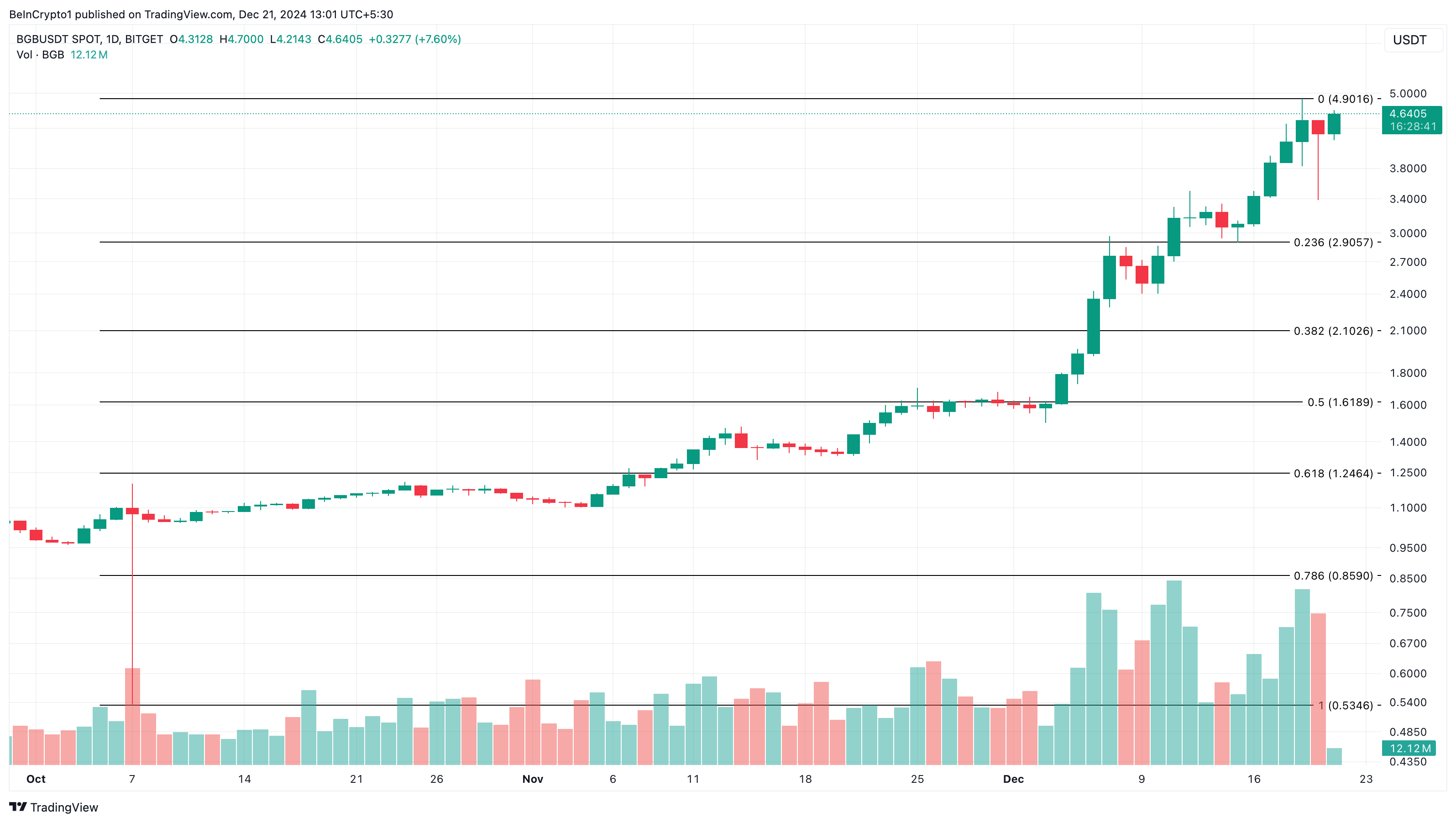 • BGB token rikkoi 4,0000 dollarin psykologisen rajan alempien ja korkeampien huippujen myötä, ja sillä on potentiaalia nousta kohti 6,0000 dollaria.