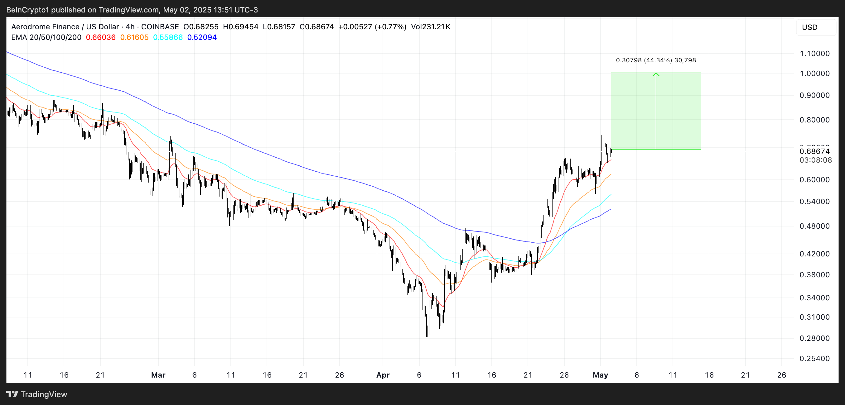 Jos suuntaus jatkuu toukokuun ajan, AERO voi nousta takaisin kohti 1 dollarin rajaa, mikä edustaisi potentiaalista 44 % nousua nykyisistä tasoista.