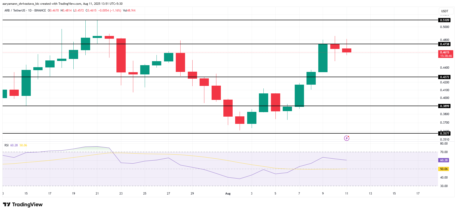 Jos markkinatunnelma pysyy suotuisana, ARB voi jatkaa liikkumista alle 0,473 dollarin vastustustason, ja mahdollinen läpimurto voi kohdistua 0,510 dollariin. Jos avauksen karhumaiset vaikutukset kuitenkin hallitsevat, ARB saattaa pudota 0,427 dollariin, mikä mitätöisi nykyisen nousujohteisen näkemyksen.