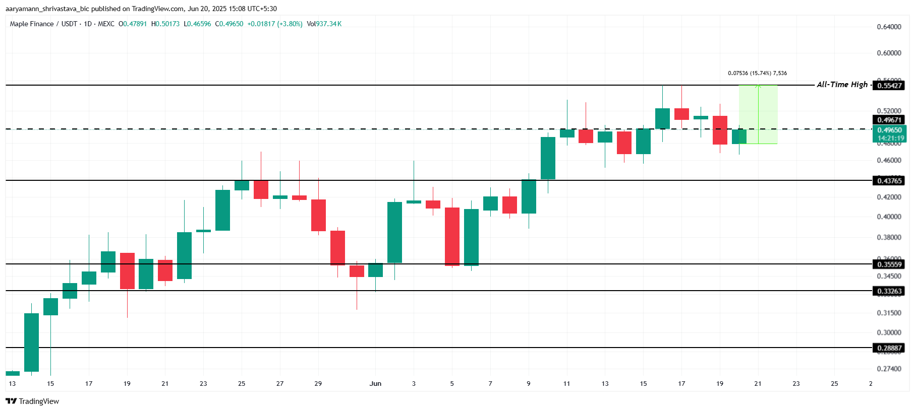 Yleinen markkinatunnelma on tällä hetkellä nousujohteinen, mikä lupaa hyvää SYRUPin kasvulle. Jos altcoin onnistuu murtamaan 0,55 dollarin vastustason, se voi liikkua kohti 0,60 dollaria ja muodostaa uusia kaikkien aikojen ennätyksiä.