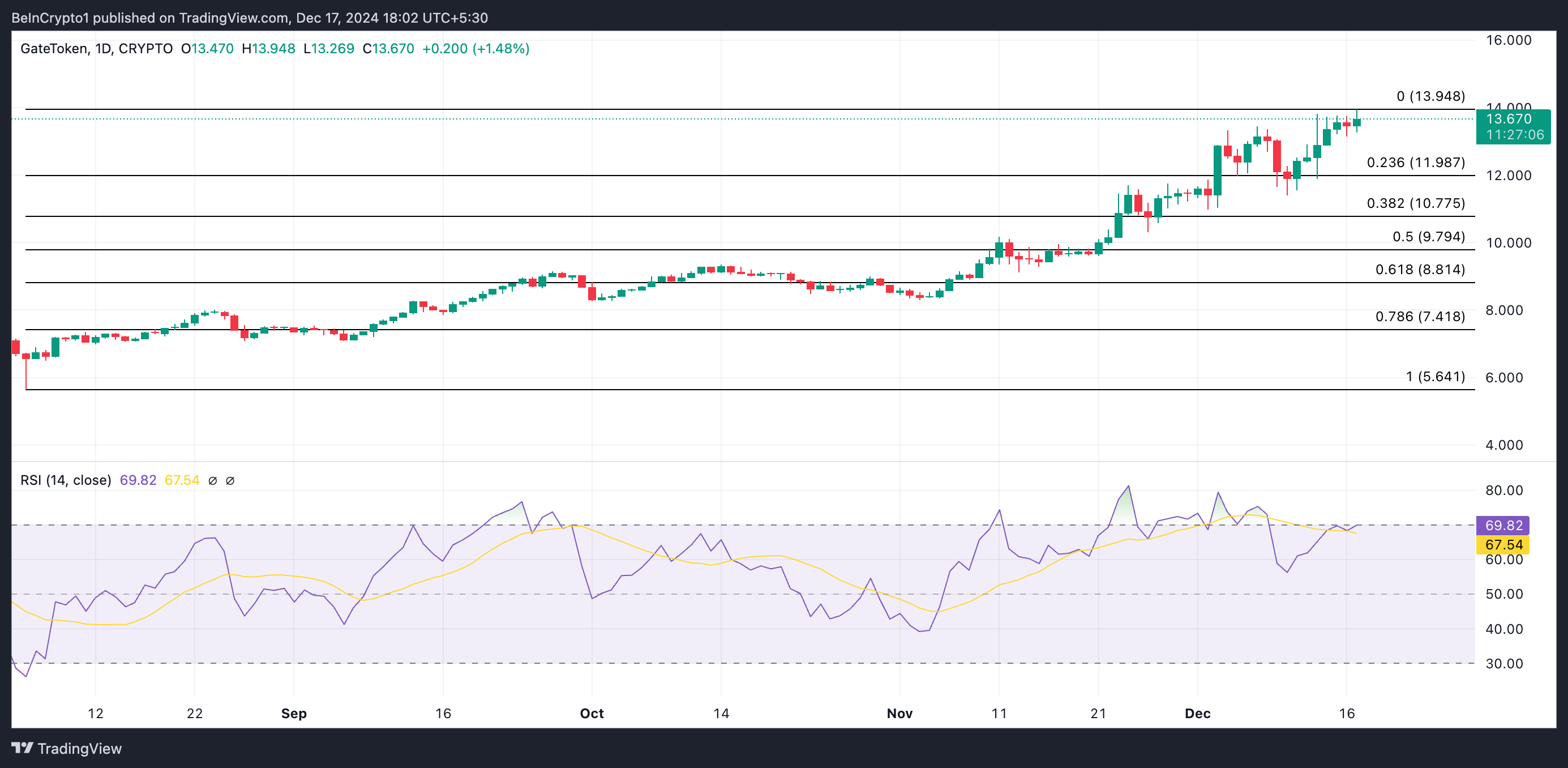 GT:n hinnannousu perustuu todelliseen kysyntään altcoinille, mikä näkyy sen nousevassa Rising Strength Indexissä (RSI), joka on tällä hetkellä 69,82.