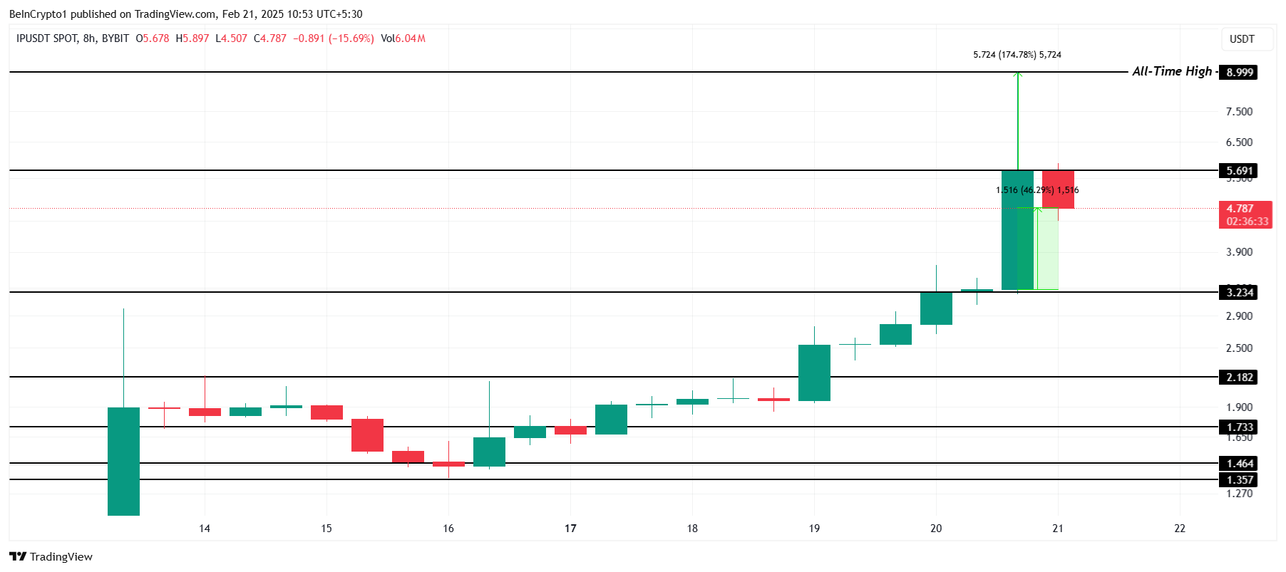 Jos IP ei kuitenkaan onnistu murtamaan ja pitämään 5,69 dollaria tukena, hinta voi laskea takaisin 3,23 dollariin. Tämä skenaario mitätöisi altcoinin nousunäkymät ja pyyhkisi pois viimeaikaiset voitot, johtaen mahdollisiin tappioihin sijoittajille.