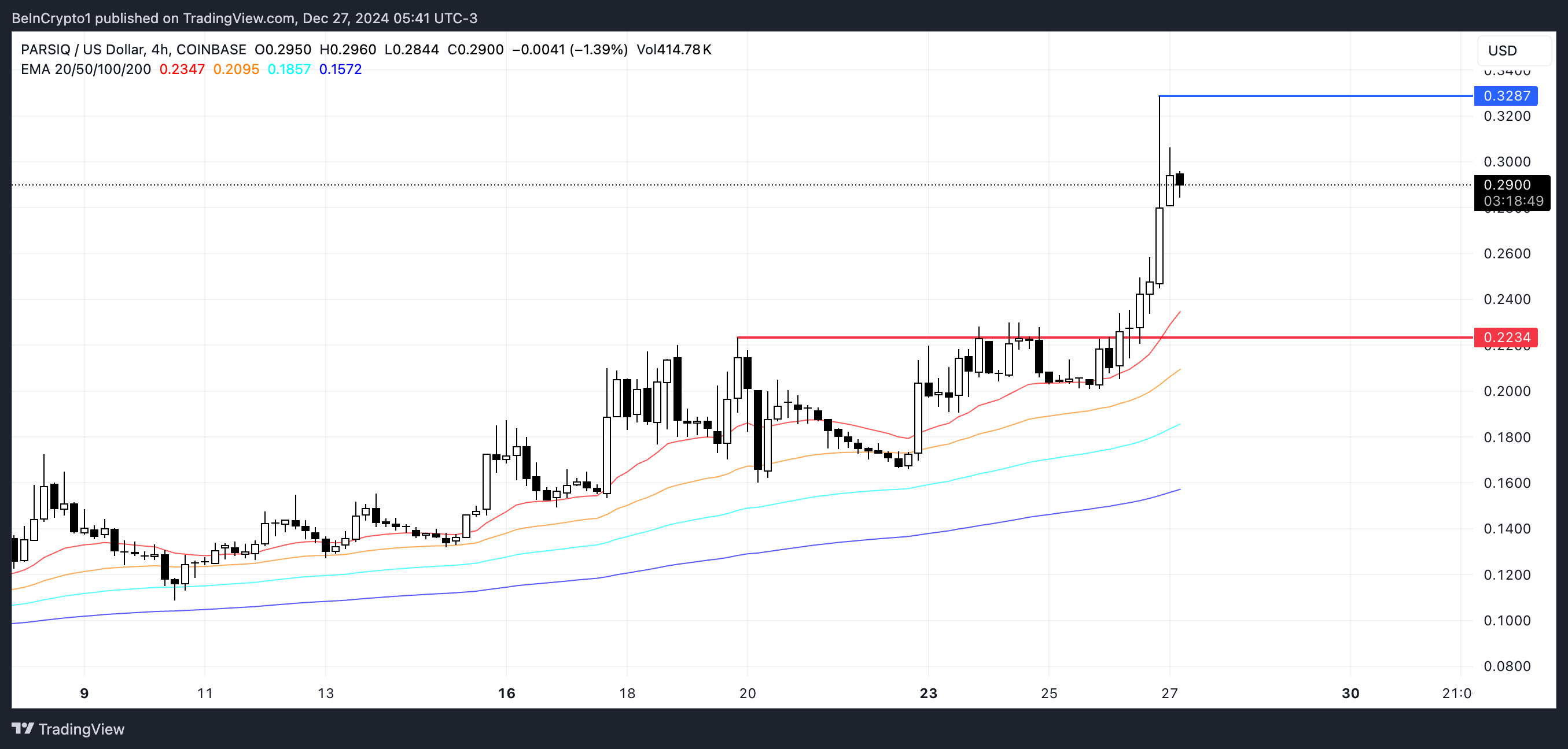 Jos nykyinen nousutrendi jatkuu, PARSIQ voi testata vastustason 0,32 dollarissa. Lähtö tämän tason yläpuolelle voi johtaa hinnan nousuun, mahdollisesti saavuttaen 0,40 tai jopa 0,45 dollaria. Jos momentum säilyy lyhyellä aikavälillä, nämä tasot voivat toimia keskeisinä virstanpylväinä.