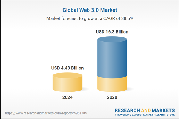Tämä liike on myös linjassa Web3-markkinoiden dramaattisen laajentumisen kanssa. Research and Markets ennusti raportissaan Web3-markkinoiden arvon kasvavan 3,19 miljardista dollarista vuonna 2023 4,43 miljardiin dollariin vuonna 2024, mikä heijastaa 38,8 prosentin CAGR:ää. Lisäkasvupotentiaali on valtava, ja markkinoiden odotetaan nousevan 16,3 miljardiin dollariin vuoteen 2028 mennessä.