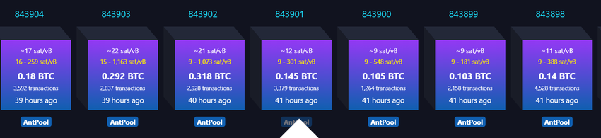17. toukokuuta AntPool louhi seitsemän peräkkäistä lohkoa lohkokorkeuksien 843 893 ja 843 904 välillä tunnissa ja kolmekymmentäkahdeksan minuutissa.