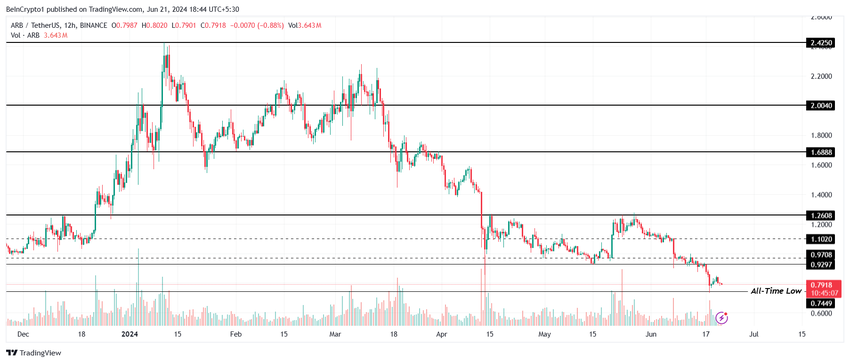 Arbitrumin (ARB) hinta on lähellä uuden kaikkien aikojen alimman tason muodostamista aikana, jolloin suurin osa altcoineista muodostaa kaikkien aikojen ennätyksiä.