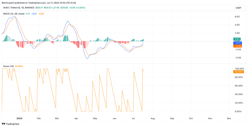 Joidenkin AVAXin keskeisten teknisten indikaattorien lukemat, jotka havaittiin yhden päivän kaaviossa, viittaavat jatkuvan rallin mahdollisuuteen.