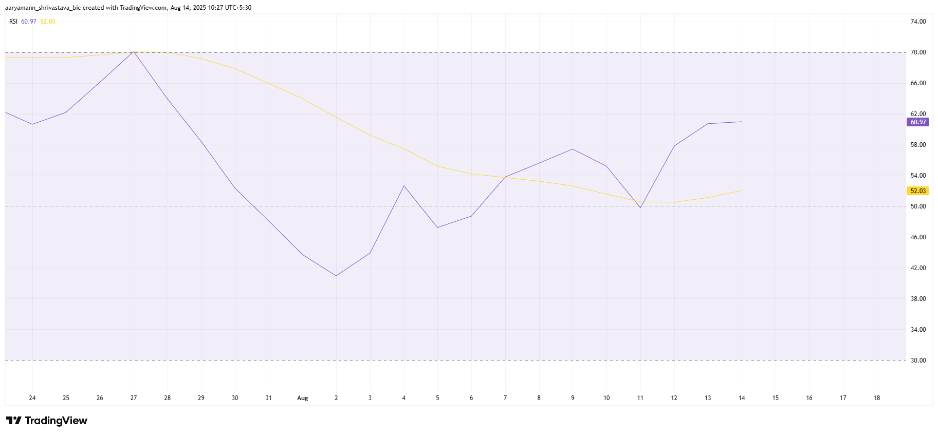 Huolimatta huolista tokenin avauksen suhteen, tekniset indikaattorit AVAX:lle osoittavat mahdollisuutta jatkaa noususuuntausta. Suhteellinen voimaindeksi (RSI) on äskettäin osoittanut nousua, ollen mukavasti yli neutraalin 50,0 pisteen.