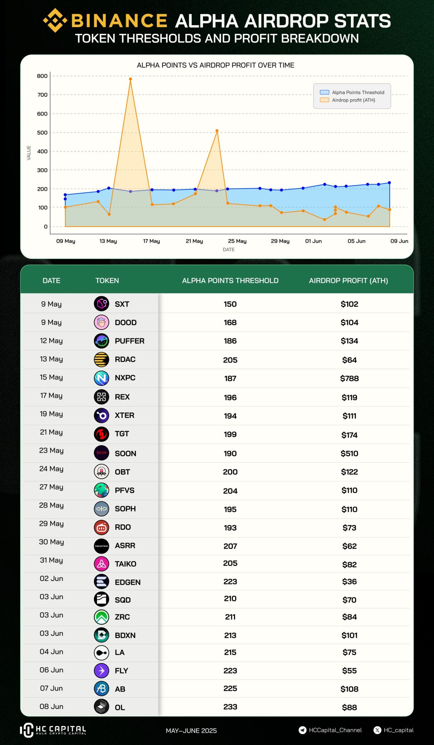 HC Capitalin raportti osoittaa, että Binance Alpha -pisteet nousivat tasaisesti 150 pisteestä 9. toukokuuta yli 200 pisteeseen kesäkuussa.
