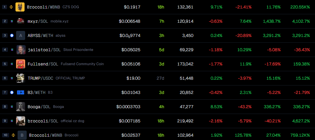 “Jos et ole siirtynyt BNB-ketjuun, tässä on mitä ‘missasit’: Broccoli #1: 400M dollaria 30M dollariin 1 tunnissa, Broccoli #2: 100M dollaria 14M dollariin 5 tunnissa, Broccoli #3: 60M dollaria 5M dollariin 2 tunnissa,” DeFi Mochi kirjoitti X:ssä.