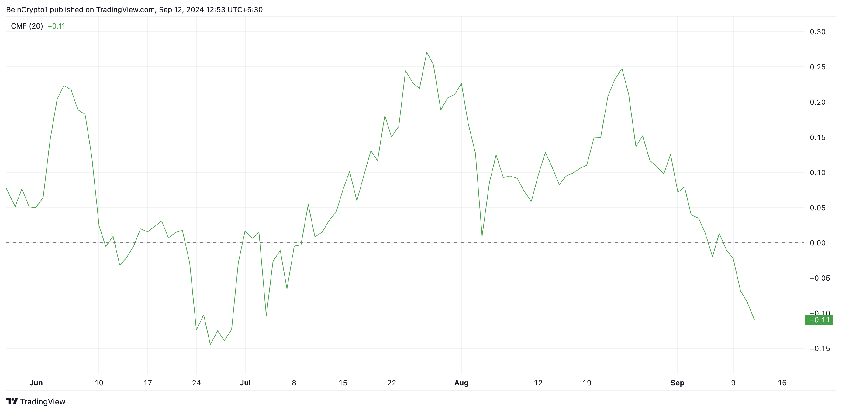 BNB onnistui murtamaan 524,50 dollarin vastuksen keskiviikkona, mutta tämä nousu saattaa olla väliaikainen. Vaikka hinta on rallinut viime viikon aikana, BNB:n Chaikin Money Flow (CMF) on ollut laskusuunnassa, mikä viittaa heikkenevään ostovoimaan, joka voi rajoittaa lisäkasvun mahdollisuuksia.