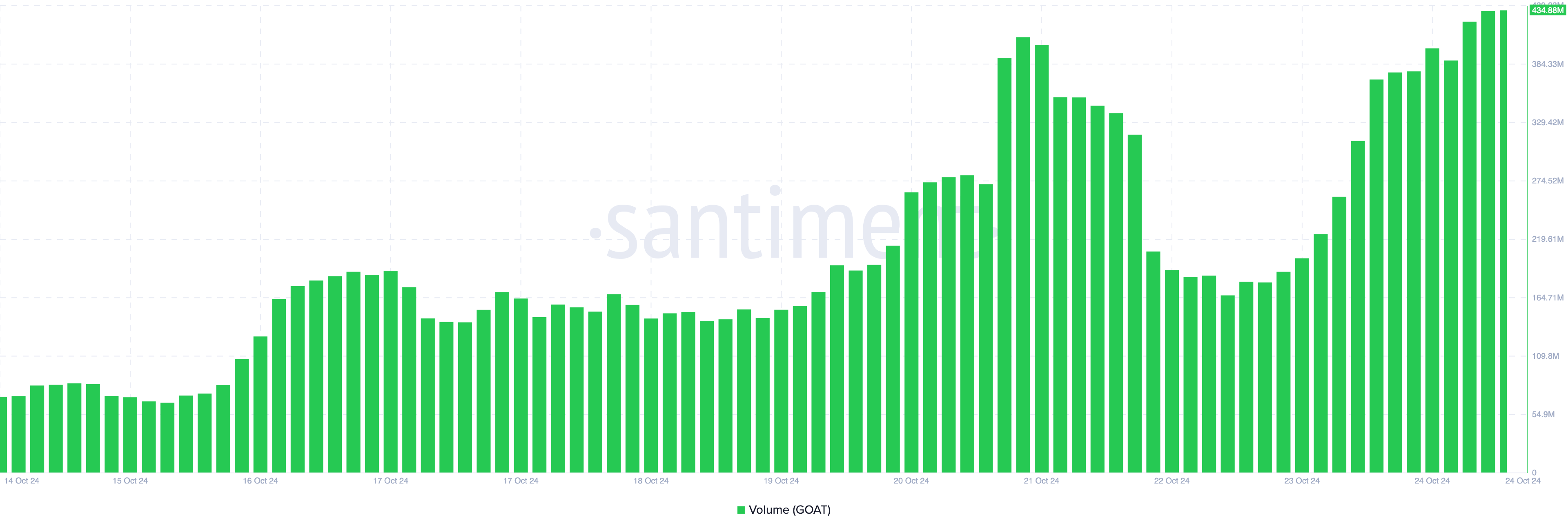Ennen julkistusta GOAT:n hinta oli 0,77 dollaria. Sen jälkeen kryptovaluutan arvo nousi 0,88 dollariin ennen kuin se hieman laski 0,85 dollariin. Kehityksen myötä volyymi nousi uuteen ennätykseen, 434,88 miljoonaan dollariin.