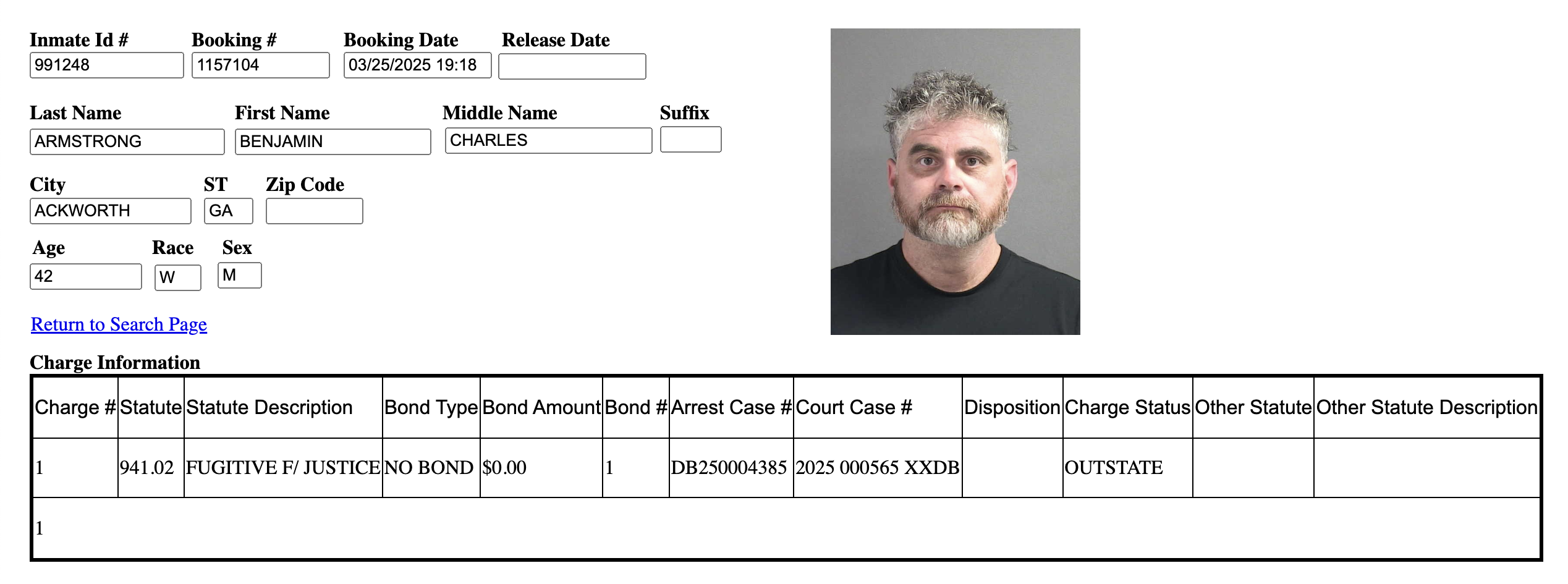 BitBoyn pidätysrekisterin mukaan hänet todettiin oikeuden pakolaiseksi ja pidettiin vangittuna ilman takuita. Tämä tarkoittaa, että Armstrongilla ei ole mahdollisuutta vapautua vankilasta ennen oikeudenkäynnin alkua.