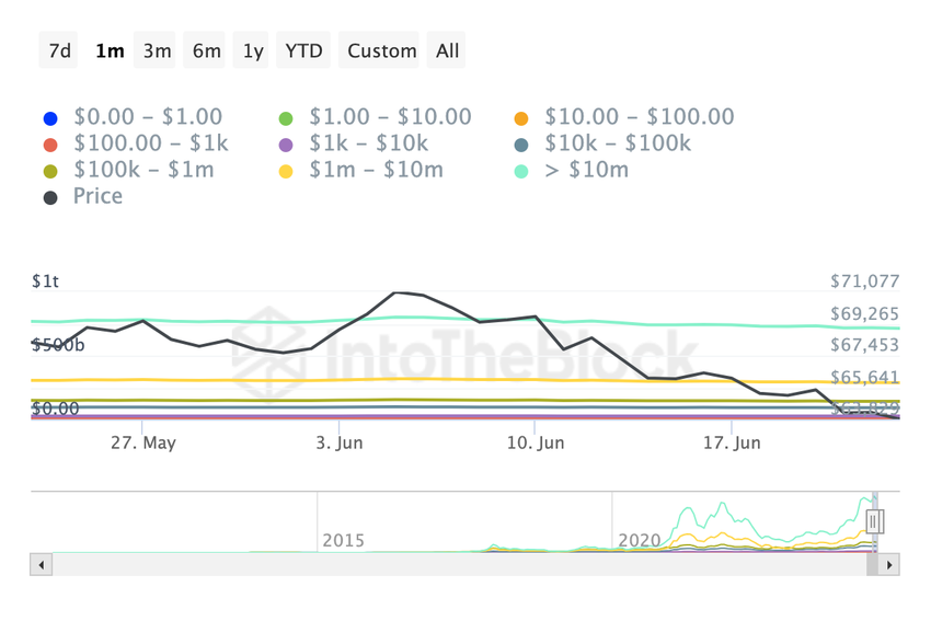 Viimeisen 30 päivän aikana osoitteita, joissa on BTC:tä 100–10 miljoonan dollarin arvosta, on myyty. Kysynnän ja tarjonnan peruslakeja käyttäen nämä myynnit asettavat Bitcoinin suuren laskun vaaraan.