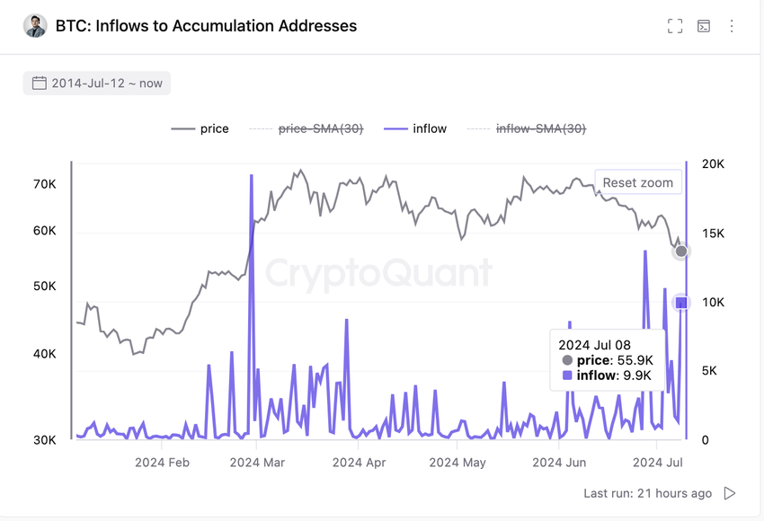 Lisäksi Bitcoinin kertymisen nousu ulottuu ETF:ien ulkopuolelle. CryptoQuantin mukaan Bitcoinin kertymisosoitteet saivat maanantaina noin 9 900 BTC:tä, arvoltaan noin 553,4 miljoonaa dollaria. Toiminta viittaa laajaan luottamukseen Bitcoinin potentiaaliin jatkuvaan hinnannousuun.