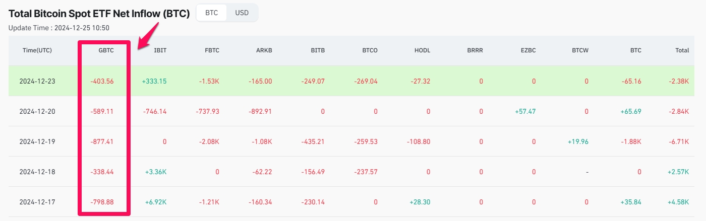 Bitcoin ETF:ien nettovirrat Yhdysvalloissa ovat kirjanneet kolme peräkkäistä päivää ulosvirtausta ennen joulua. Lisäksi nämä ETF:t asettivat uuden yhden päivän ulosvirtauksen ennätyksen, mikä heikensi väliaikaisesti Bitcoinin nousuvauhtia.