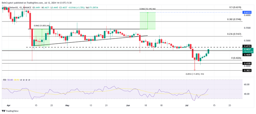 XRP-hinta ei seuraa BTC:n ja ETH:n viitoittamaa polkua, koska altcoin muodostaa jatkuvasti vihreitä kynttilänjalkoja päiväkaavioon. Viime päivinä Ripplen natiivi token on kasvanut turvaamaan 0,46 dollaria tukitasona.