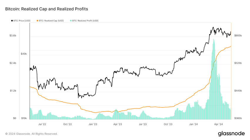 Kun Bitcoin saavutti uuden kaikkien aikojen ennätyksen, yli 73 000 dollaria, maaliskuun puolivälissä, myös sen realisoitu pääoma kasvoi, mikä viittaa siihen, että useimmat pitkäaikaisomistajat olivat kannattavia. Tämän seurauksena jotkut poistuivat positioistaan, mikä johti realisoitujen voittojen merkittävään nousuun.