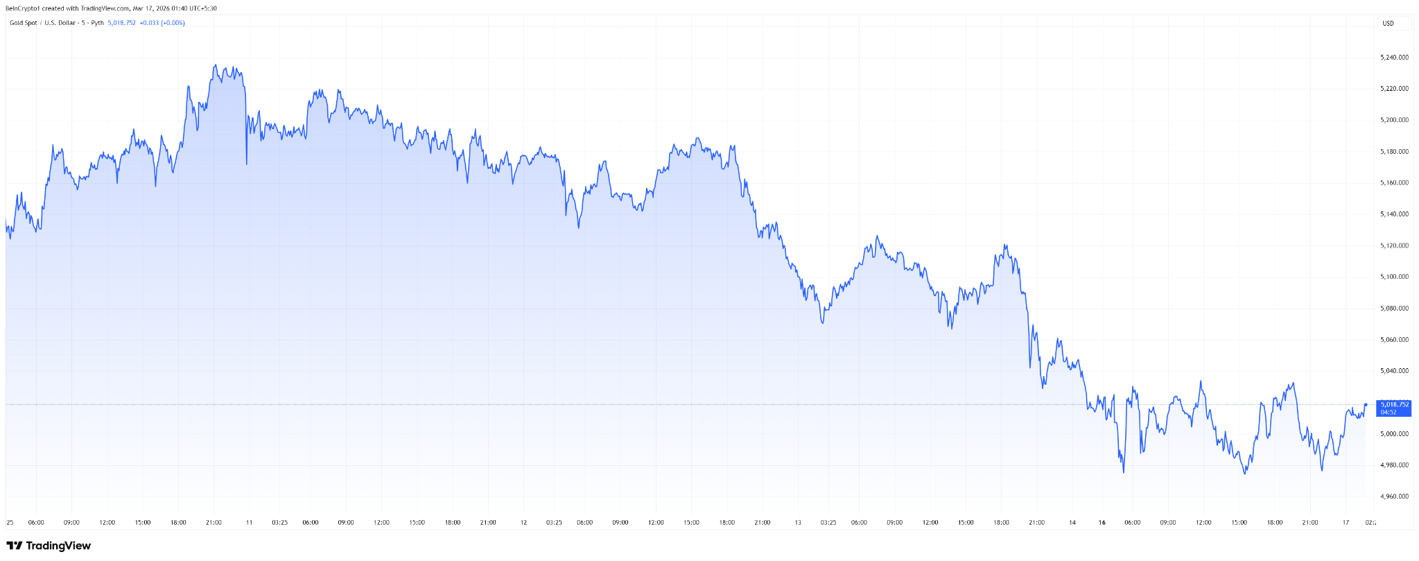 Bitcoin nousee, kun kulta laskee