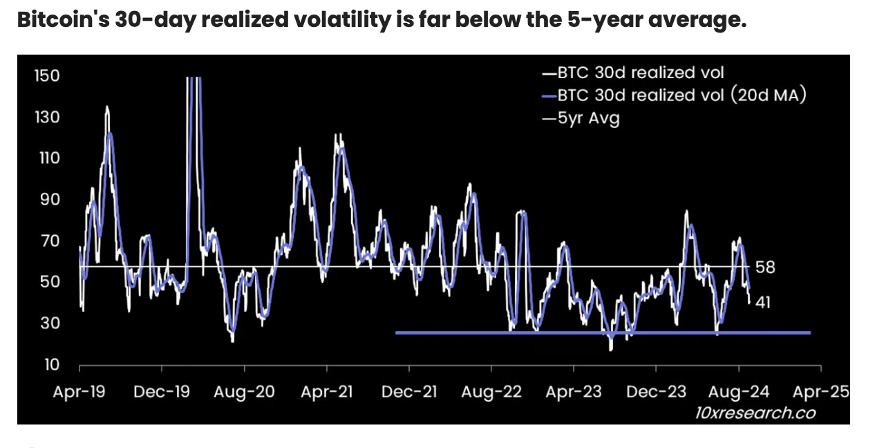 lisäksi Bitcoin on rekisteröinyt laskun 30 päivän toteutuneessa volatiliteetissa. Tämä lasku tarkoittaa, että institutionaaliset sijoittajat voivat lisätä positioitaan, mikä johtaa BTC:n ja laajemman markkinan arvojen nousuun.