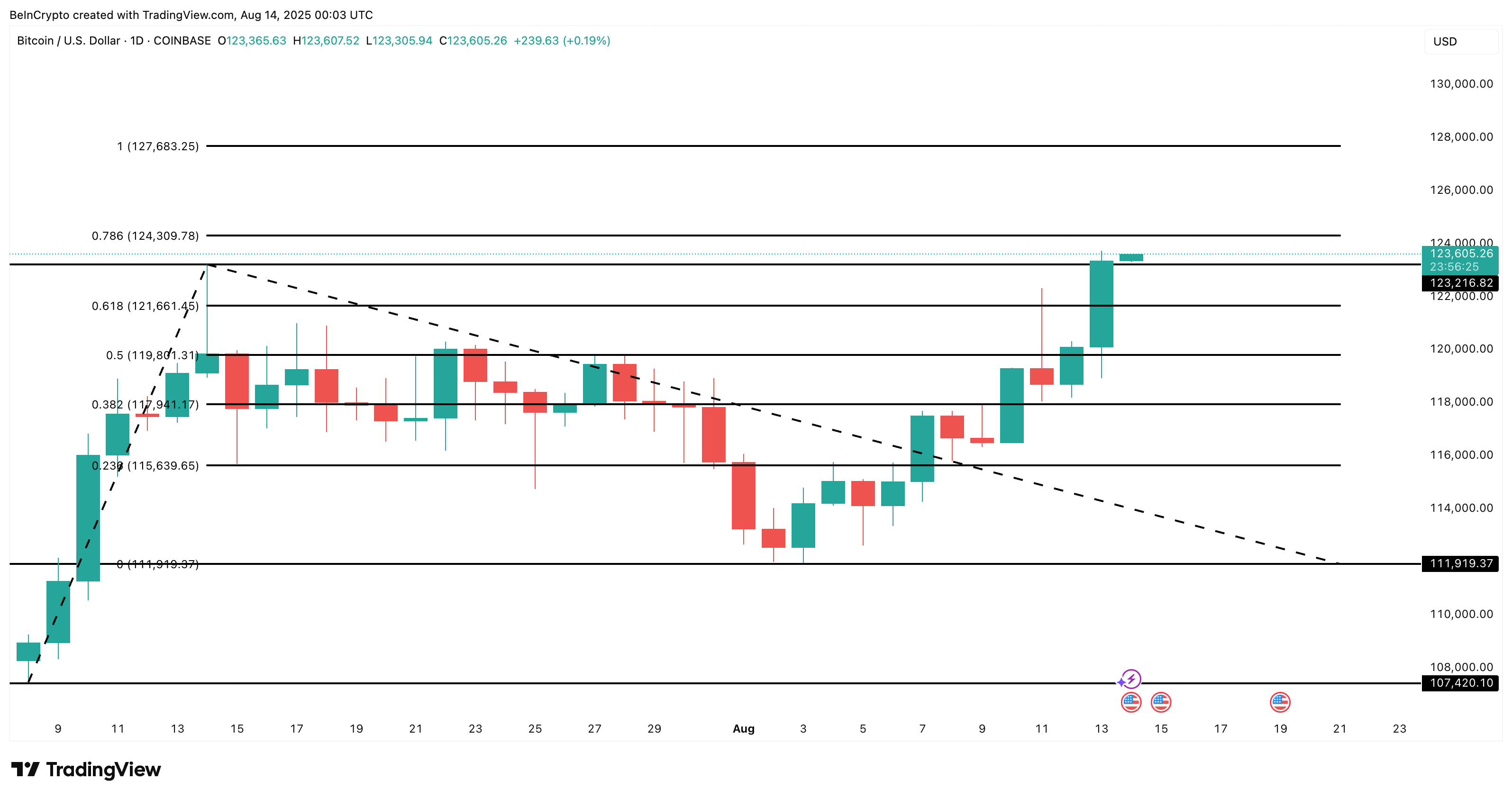 Tunnelman ollessa nyt vahvasti härkien puolella, välitön testi on 124 300 dollaria, joka on viimeinen merkittävä este ennen korkeampien tavoitteiden saavuttamista.