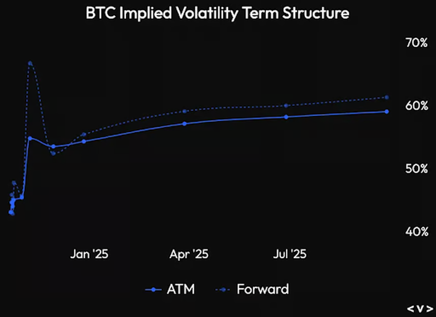 Bitfinexin analyytikoiden mukaan Bitcoin-optioiden implikoitu volatiliteetti on tällä hetkellä 40-luvun alapäässä, mikä osoittaa, että markkinaosapuolet eivät ole kovin luottavaisia suurien hintamuutosten suhteen.