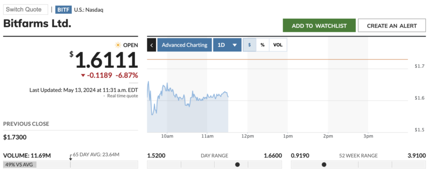 Markkinat reagoivat negatiivisesti Morphyn potkuihin, ja Bitfarmsin osakkeet laskivat yli 6 % ilmoituspäivänä. Tällainen hintatoiminta heijastaa huolta yrityksen vakaudesta ja tulevasta suunnasta Bitfinexin Bitcoin-suurlähettilään Javier Bastardon mukaan.