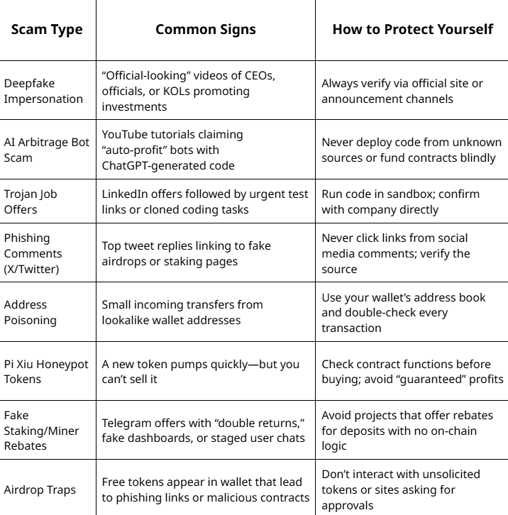 AI:lla luotujen huijausten lisäksi Bitget varoittaa, että perinteiset Ponzi- ja pyramidihuijaukset eivät ole kadonneet, vaan ne ovat muuttuneet. Erityisesti nämä huijaukset ovat kokeneet “digitaalisen evoluution,” hyödyntäen on-chain-työkaluja, nopeaa viraalimarkkinointia ja älysopimusten kautta luotua laillisuuden illuusiota.