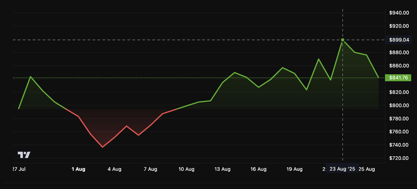 Päivän aikana BNB:n hinta oli 846 dollaria, laskien 3,5 % edellisestä 24 tunnista, kun taas Bitcoin laski 3,2 % samana ajanjaksona, alittaen 110 000 dollaria.