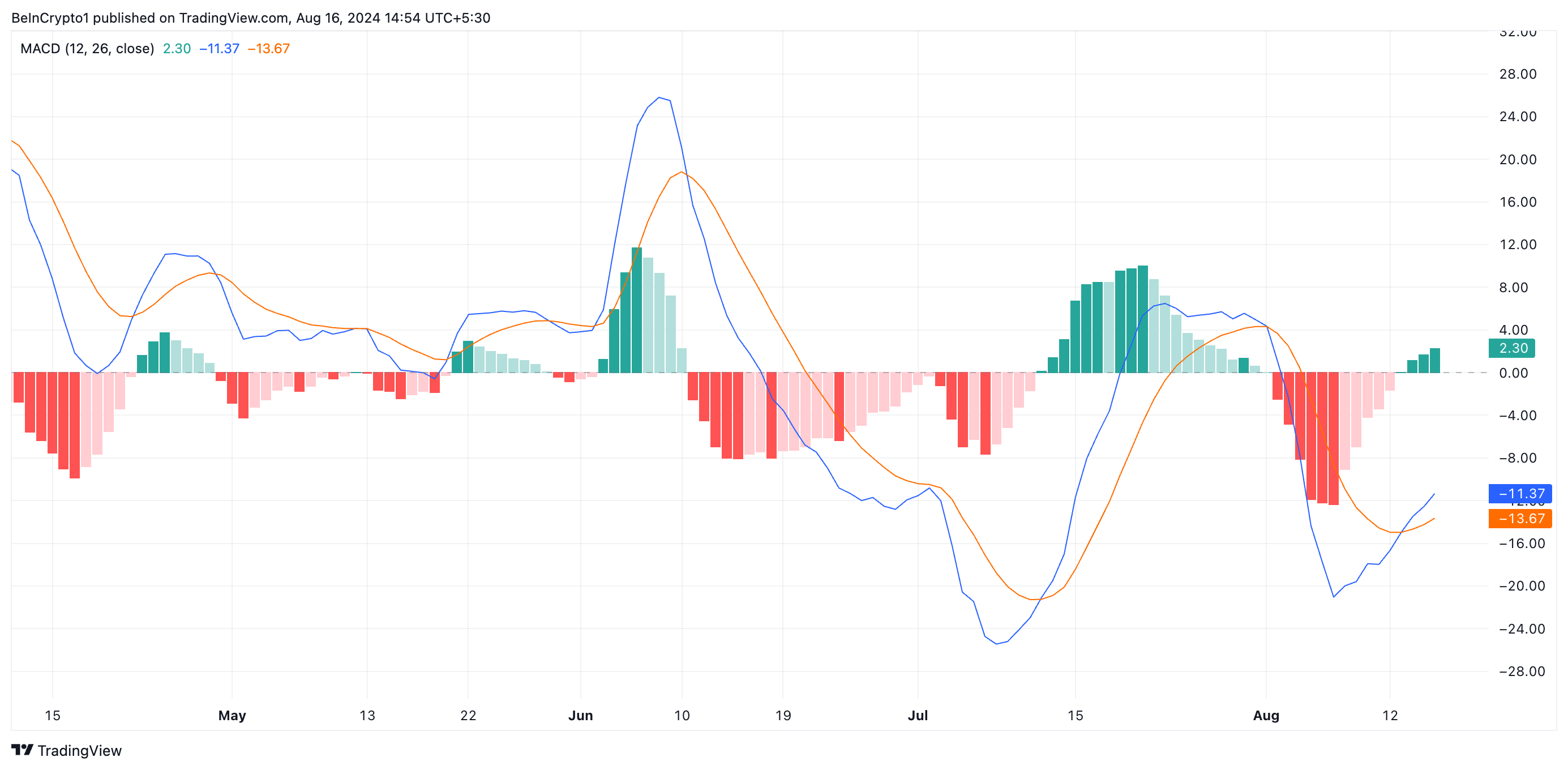 Lisäksi BNB:n liukuvan keskiarvon konvergenssi/divergenssi (MACD) -indikaattori heijastaa vahvempaa ostovoimaa kuin myyntitoimintaa. Tällä hetkellä MACD-viiva (sininen) sijaitsee signaaliviivan (oranssi) yläpuolella, vahvistaen edelleen härkämäistä momenttia.