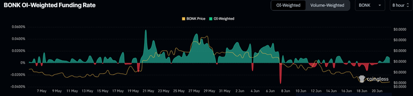 Positiiviset rahoitusasteet tarkoittavat, että kauppiaat ovat valmiita maksamaan palkkion pitkien positioidensa säilyttämiseksi. Tämä osoittaa sijoittajien lisääntynyttä luottamusta altcoinin nousupotentiaaliin, mikä heijastaa nousevaa tunnelmaa. Muutos voi olla keskeinen tekijä BONKin hinnalle lähitulevaisuudessa.