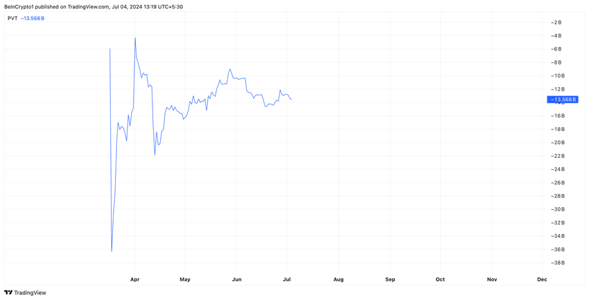BOMEn PVT aloitti viimeisimmän laskunsa 27. kesäkuuta ja on sen jälkeen laskenut. Lehdistöhetkellä indikaattorin arvo on -13,57 miljardia.