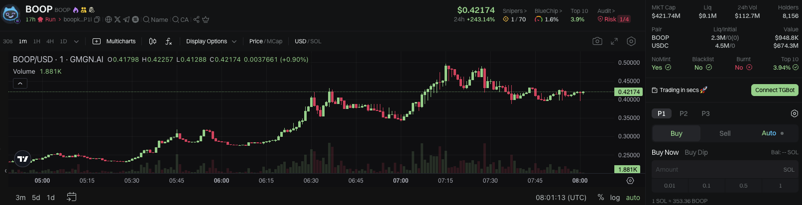 BOOP, uusin meemikolikko Solanassa, ylitti nopeasti 500 miljoonan dollarin markkina-arvon vain muutama tunti sen jälkeen, kun se lanseerattiin 1. toukokuuta 2025, herättäen suurta kiinnostusta kryptoyhteisössä.