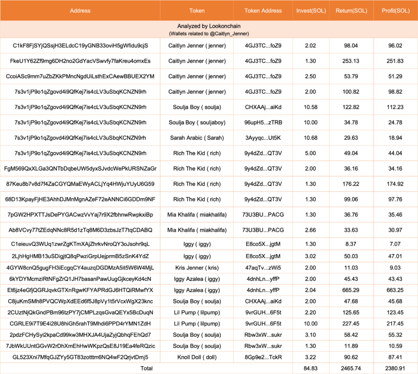 Perusteellisen seurannan jälkeen Lookonchain huomasi, että Jenner loi lukuisia uusia osoitteita ja lanseerasi vielä 12 meemikolikkoa. Hän osti nämä meemikolikot ja myi ne myöhemmin valtavalla voitolla.