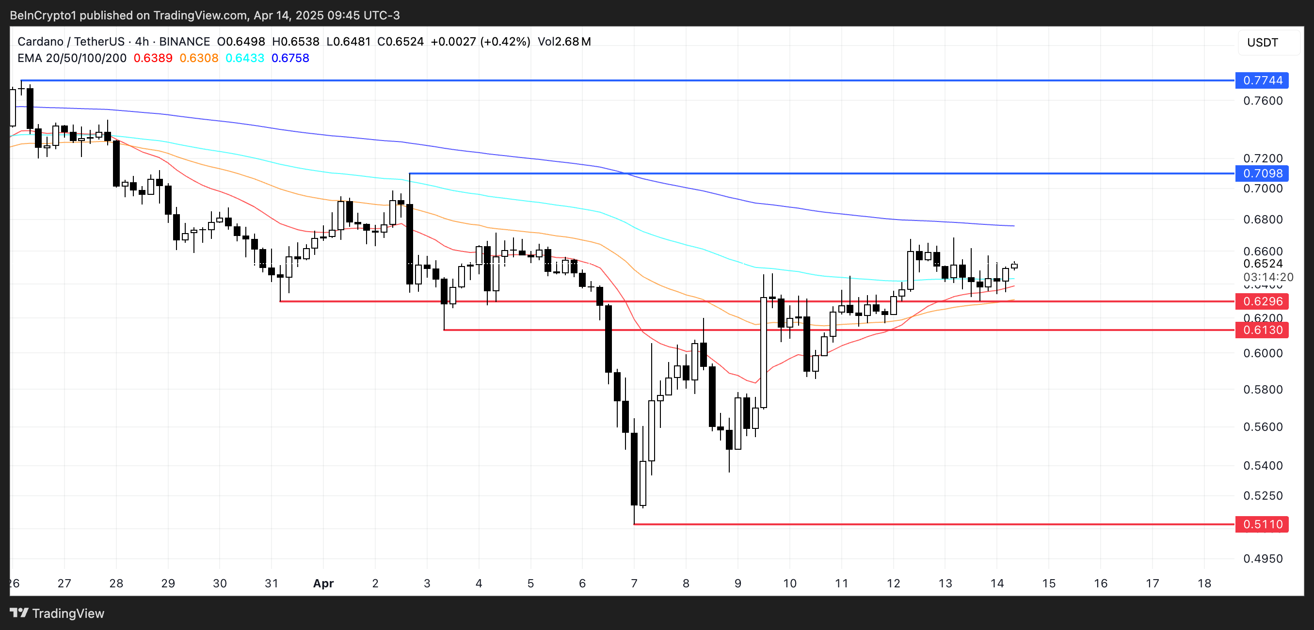 Kuitenkin Cardano on herkässä asemassa, ja se käy kauppaa juuri kahden lähellä olevan tukitason yläpuolella, jotka ovat 0,629 ja 0,61 dollaria. Jos jompikumpi näistä tasoista testataan ja menetetään, se voisi mitätöidä noususkenaarion ja laukaista uudelleen myyntipaineen.