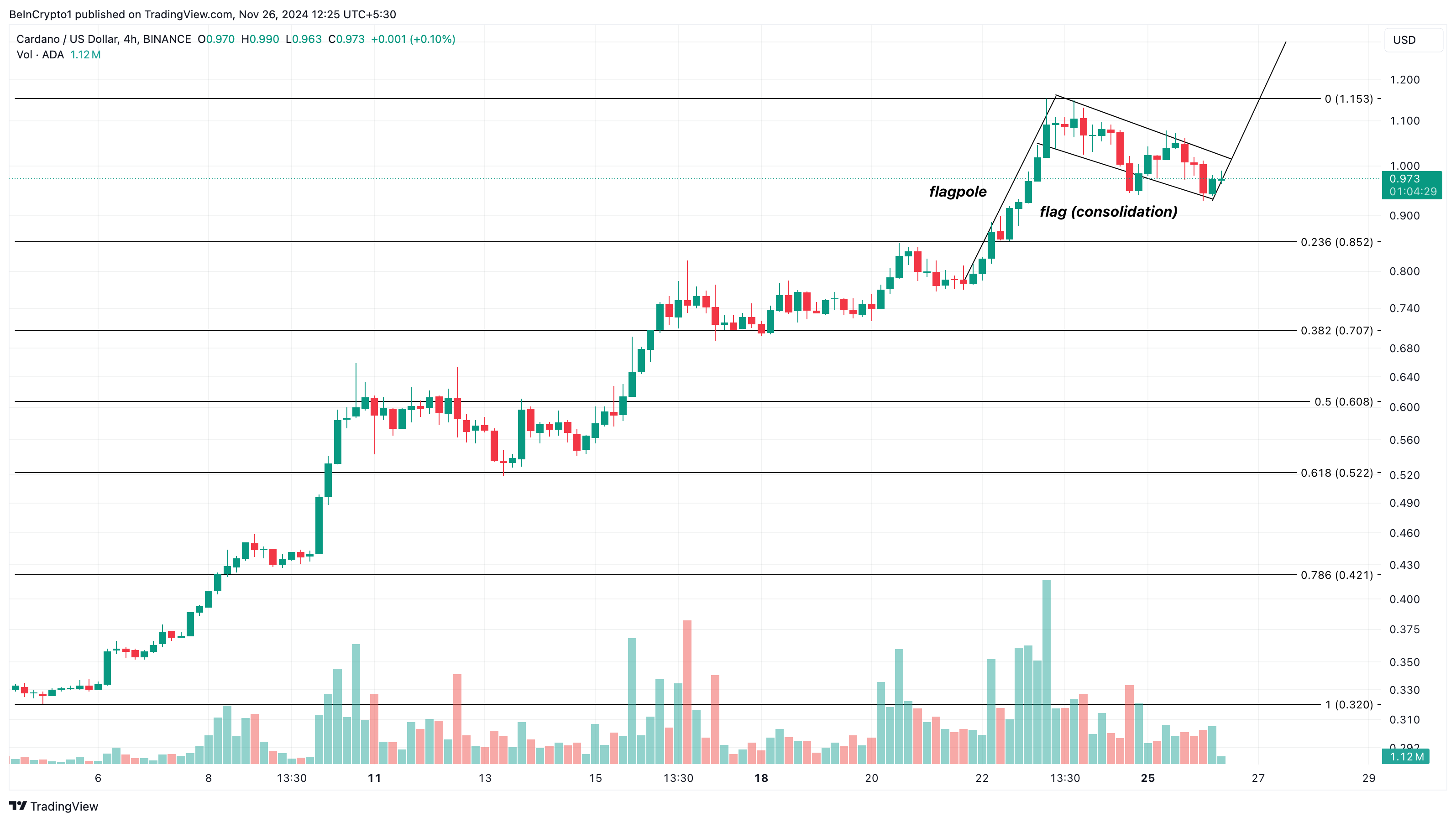 Tätä kirjoitettaessa Cardanon hinta on 0,98 dollaria sen jälkeen, kun se alun perin nousi 1,15 dollariin äskettäin. Lievä lasku voi liittyä laajempaan markkinoiden laskuun eilen, jolloin Bitcoin (BTC) putosi alle 95 000 dollarin.