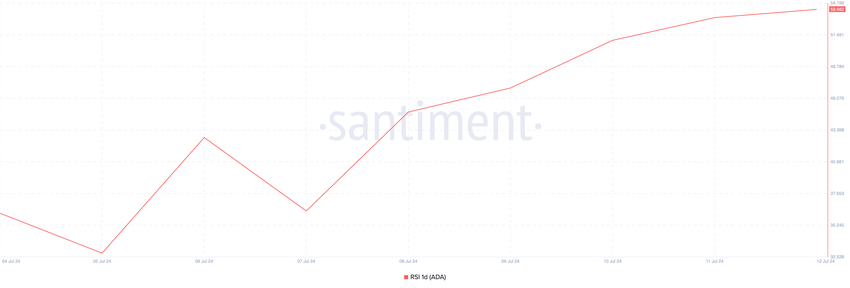 Lisäksi ADA:n nouseva suhteellinen voimaindeksi (RSI) viittaa siihen, että hinnannousua tukee kolikon todellinen kysyntä. Mittari on nousutrendissä lehdistöhetkellä ja lepää 53,66:ssa.