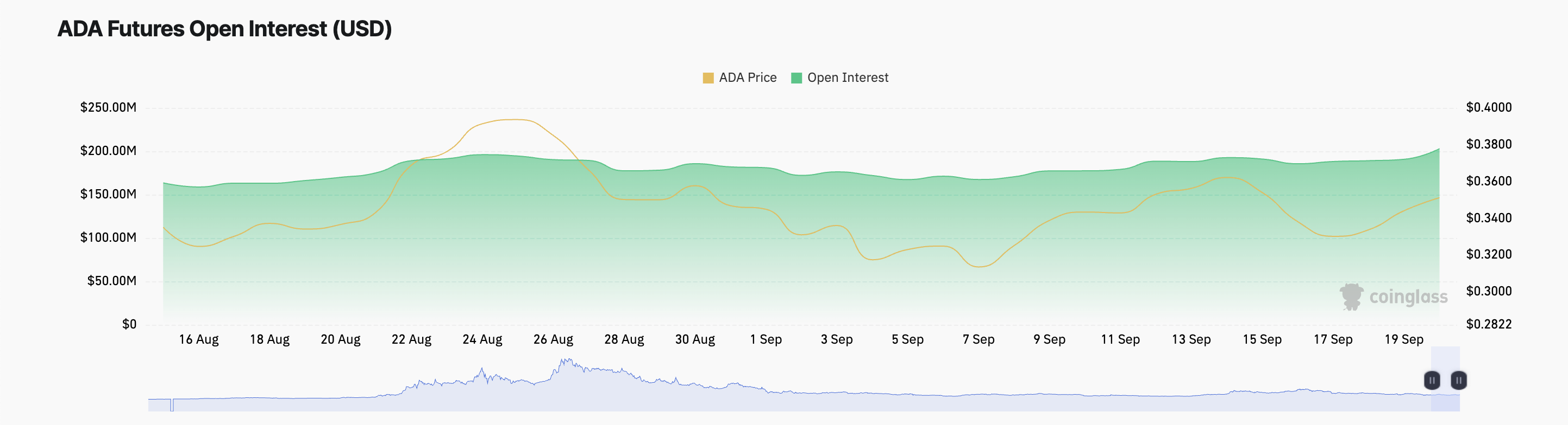 Hintapiikin myötä myös ADAn johdannaismarkkinoiden toiminta on kasvanut. Viimeisen 24 tunnin aikana sen avoin korko, joka mittaa kaikkien avoimien futuuri- tai optiosopimusten kokonaismäärää, on kasvanut 4%.