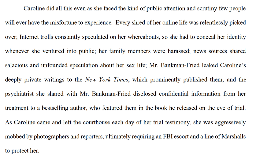 “Caroline Ellisonin lakimiehet haluavat poistaa osia hänen tuomioistuimen esityksestään, koska hän on ollut voimakkaan median huomion ja internetin kiinnostuksen kohteena”, oikeuskirjeenvaihtaja Jacob Shamsian sanoi.