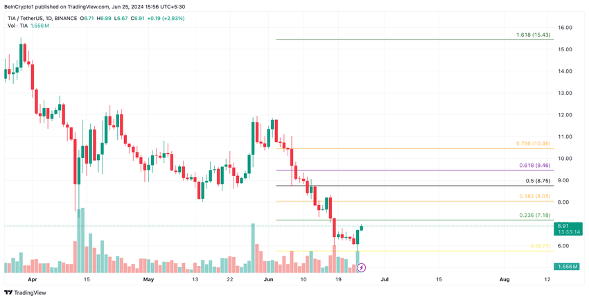 Modulaarisen lohkoketjuverkon Celestian alkuperäisen tokenin TIA:n arvo on laskenut hintatasolle, joka havaittiin viimeksi marraskuussa 2023.