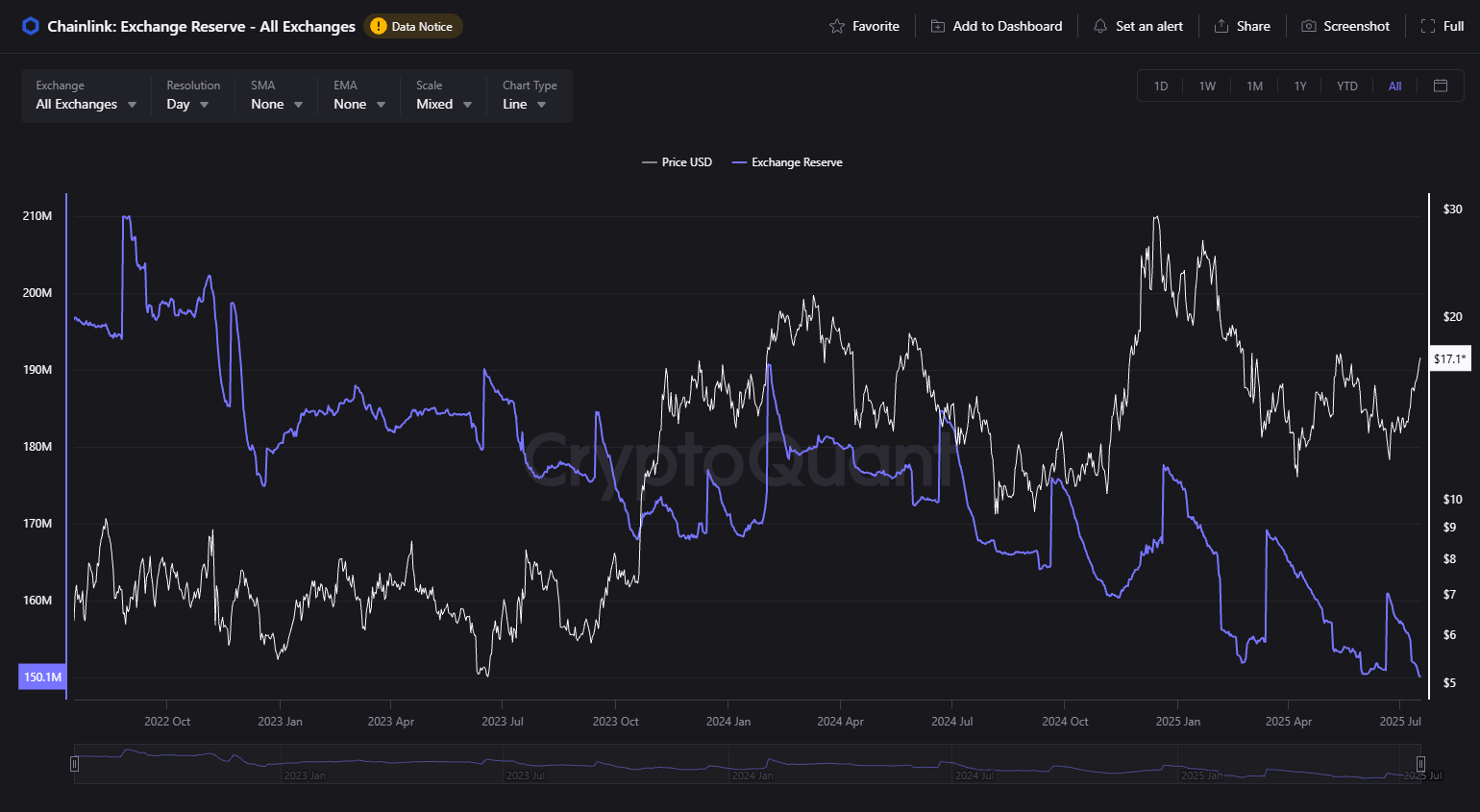 Toinen tekijä LINKin hinnan nousun taustalla on tokenin tarjonnan lasku pörsseissä kaikkien aikojen alimmalle tasolle. Tämä on nousujohteinen merkki, joka viittaa kasvavaan pitkäaikaiseen luottamukseen projektiin.