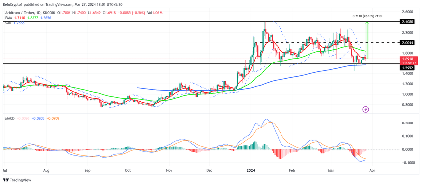 Kaikkien aikojen huippu on nyt 42%:n etäisyydellä merkistä, ja ARB:n pitäisi kääntää 50- ja 100-päivän EMA, jotta se pääsisi 2 dollariin. Tämä tukitaso antaa tarvittavan sysäyksen rallin jatkamiseen kohti 2,40 dollaria.