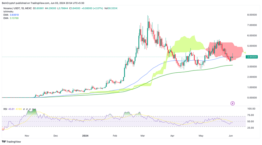 Nosana (NOS) käy tällä hetkellä kauppaa 1D Ichimoku -pilven sisällä. Hinta on testannut pilven alarajaa, mikä on nouseva merkki, mikä korostaa tämän teknisen indikaattorin seurannan merkitystä.