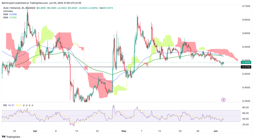 GLM käy kauppaa laskevassa kuviossa ja jatkaa hinnankorjaustaan 0,66 dollarista 0,47 dollariin. Nykyinen hinta on 0,49 dollaria, mikä voi olla hyvä kohta sijoittaa GLM:ään pitkällä aikavälillä. Jos hinta laskee alle 0,47 dollarin tukitason, se voi olla hyvin laskeva ja mahdollisesti laskea hinnan 0,45 tai 0,40 dollariin.